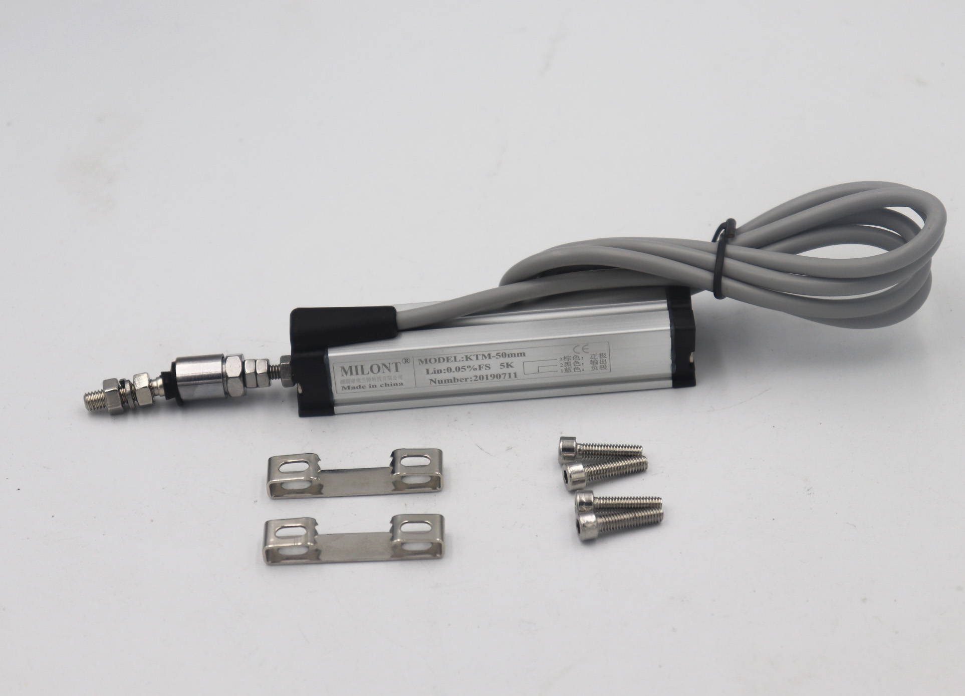 measuring Range 10-300 mm, sensor potentiometer principle, output DC voltage signal. The signal can be converted into standard 0-5vv, 0-10V, 4-20mA analog signal or RS485 digital signal by internal or external transmission module. There are many types of KTR self reset linear displacement sensor. Please contact us for special requirements.