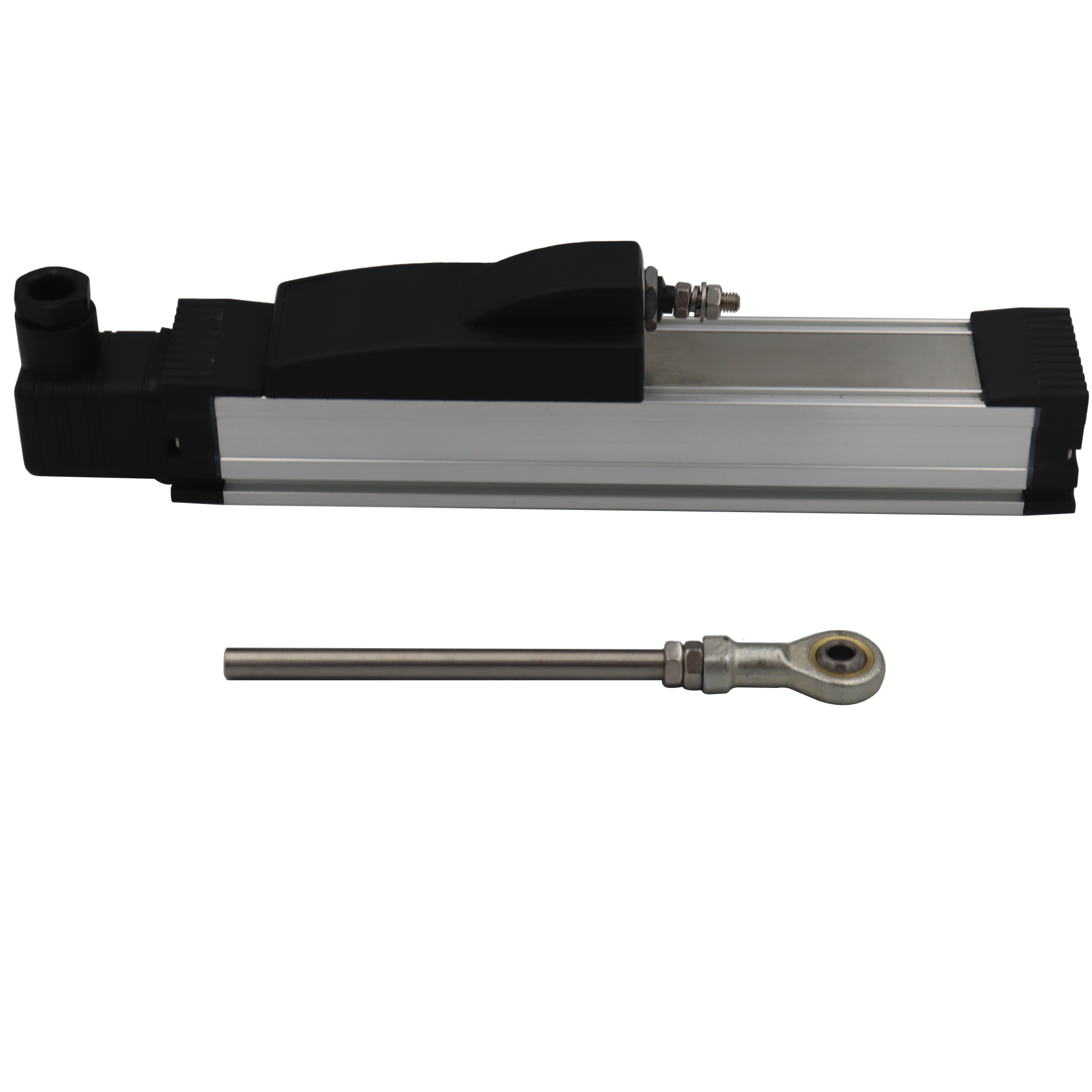 直線位移傳感器的功能在于把直線機(jī)械位移量轉(zhuǎn)換成電信號(hào)。為了達(dá)到這一效果,通常將可變電阻滑軌定置在傳感器的固定部位,通過(guò)滑片在滑軌上的位移來(lái)測(cè)量不同的阻值。傳感器滑軌連接穩(wěn)態(tài)直流電壓,允許流過(guò)微安培的小電流,滑片和始端之間的電壓,與滑片移動(dòng)的長(zhǎng)度成正比。將傳感器用作分壓器可最大限度降低對(duì)滑軌總阻值精確性的要求,因?yàn)橛蓽囟茸兓鸬淖柚底兓粫?huì)影響到測(cè)量結(jié)果。